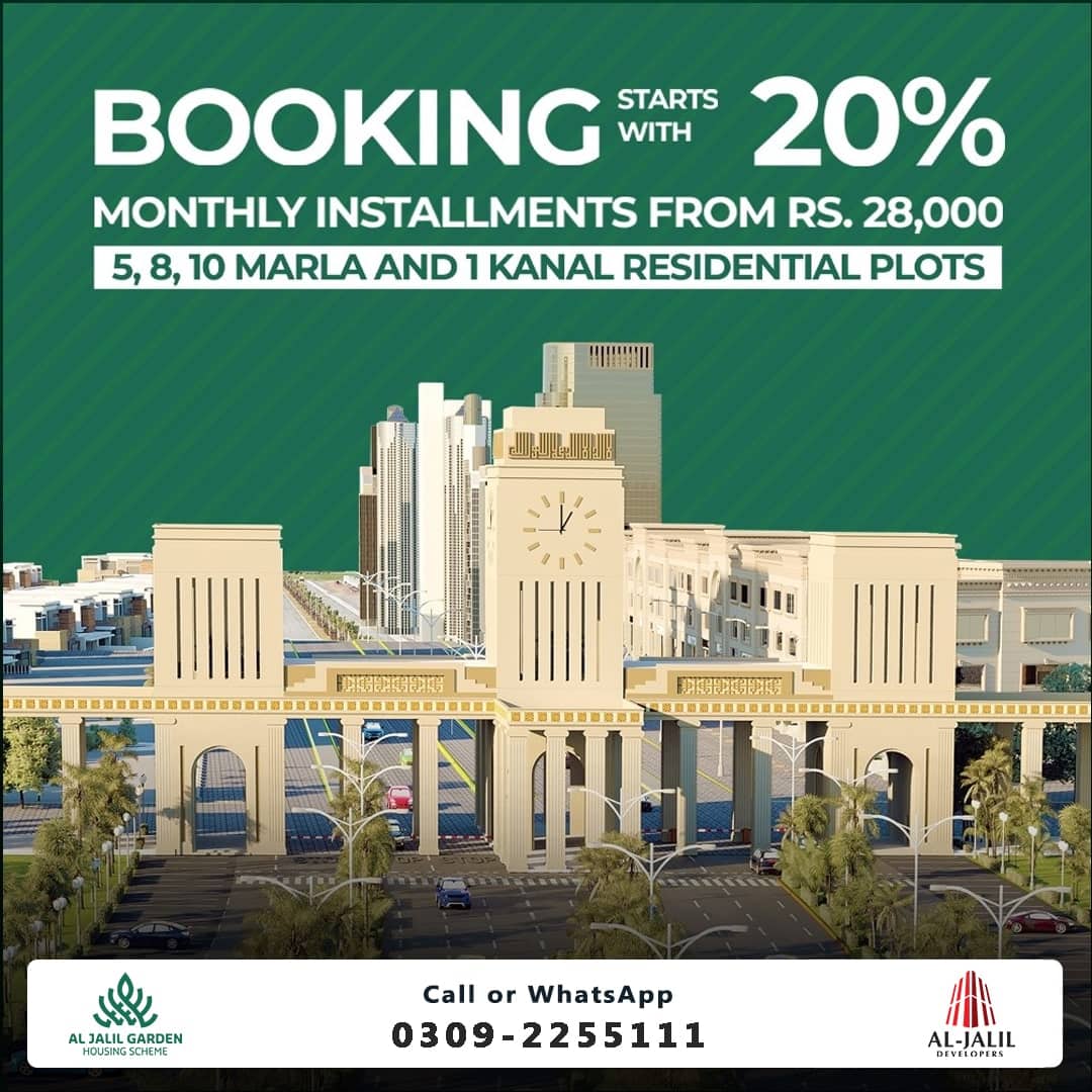Al Jalil Garden has a very affordable three years payment plan for 3, 5, &10 Marla plots instalments start from just Rs.15000. Al Jalil Developers have thought immensely about their clients and the current economic condition.